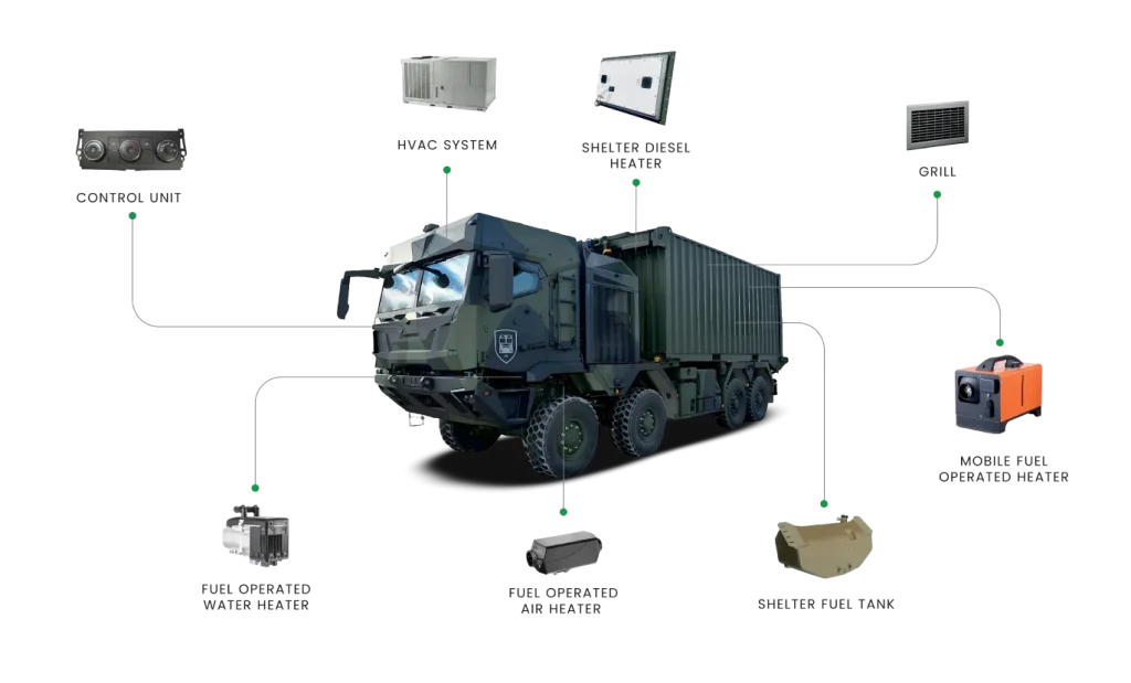 Military vehicles are utilized in a wide range of global climate conditions. Rida’s heating and air conditioning solutions stand out for their exceptional reliavility, making them a compelling option for military applications. Our rugged products not only meet the most stringent standards but also find application in thermal management for specialized vehicles and mobile containers.